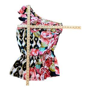Arden B Womens Pink Black Floral Print One Shoulder Drop Waist Top Sz L NWT