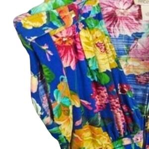 Arden B Zip Floral Pleated Flare Sleeveless Dress Small Blue Yellow