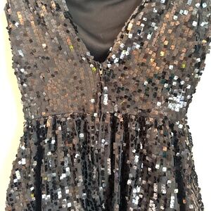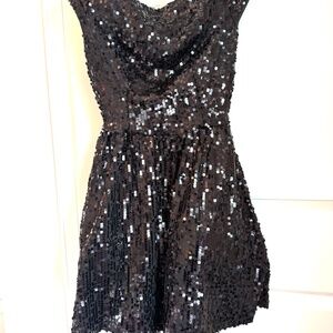 dress features a scoop neck, short sleeves, and a fitted bodice with a flared skirt.