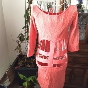 Arden B coral color cutout back sweater dress size large y2k animal print