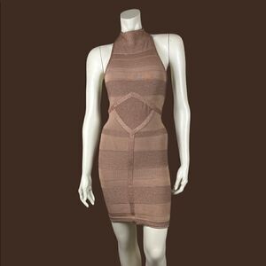 Arden B Copper Bodycon Halter Top Open Back Dress Size Medium