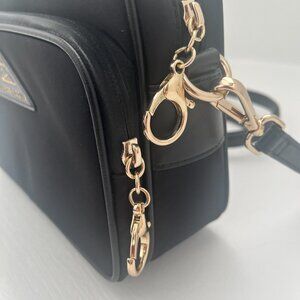 This is a Pre-Owned Arden Cove Crissy Full Crossbody with Classic Clasps Strap in the Color Black and Gold. The bag has seldom ever been used and has been kept in excellent condition with no signs of wear.