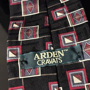 Thank you for looking at this Arden Cravats Tie Gray White Red Black Neckwear Silk Modernist Stripes Business