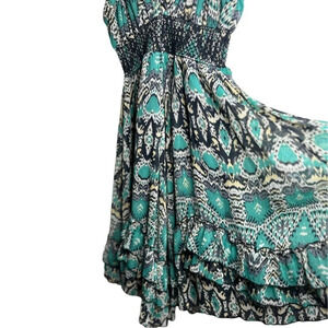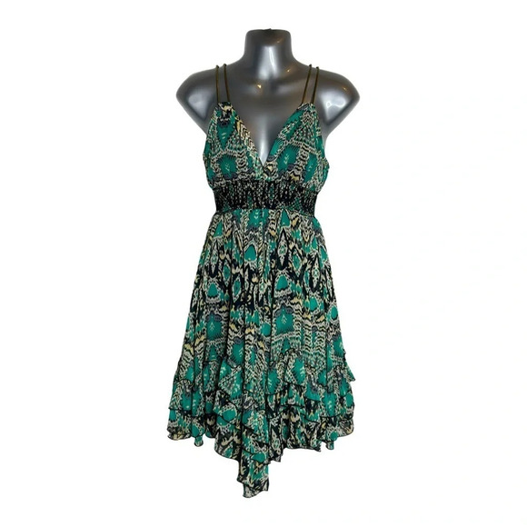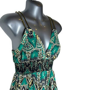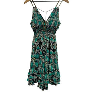 Arden B. Mini Fit & Flare Y2K Dress Black Green Unique Metal Straps Women’s Small