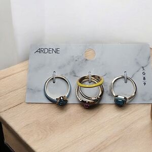 Discover the allure of Ardene's jewelry collection with this stunning set of rings, featuring vibrant blue and purple gemstones. Each ring is designed with a modern and minimalist aesthetic, showcasing the colorful centerpiece stones in a solitaire style setting. Perfect for adding a touch of elegance and color to any outfit.