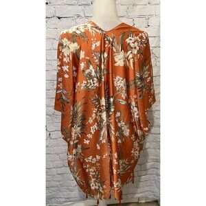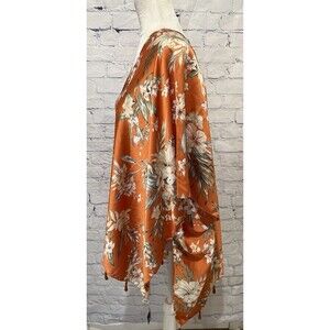Ardene Orange Floral Kimono With Bottom Fringe NWT OS