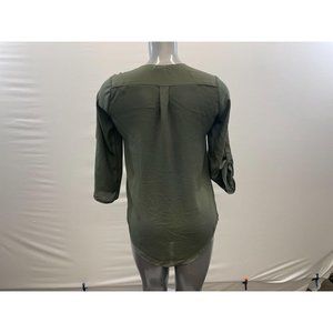 Ardene Women's Sheer 1/2 Zip Up Blouse Green 3/4 Roll Tab Sleeves Polyester