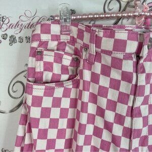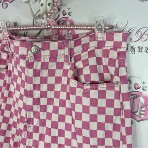 Ardene pants checkered plaid squares straight Pink and White Checkered Pants