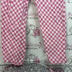 Stylish pink checkered bottoms perfect for any occasion. Comfortable and trendy design. 13. Straight leg.