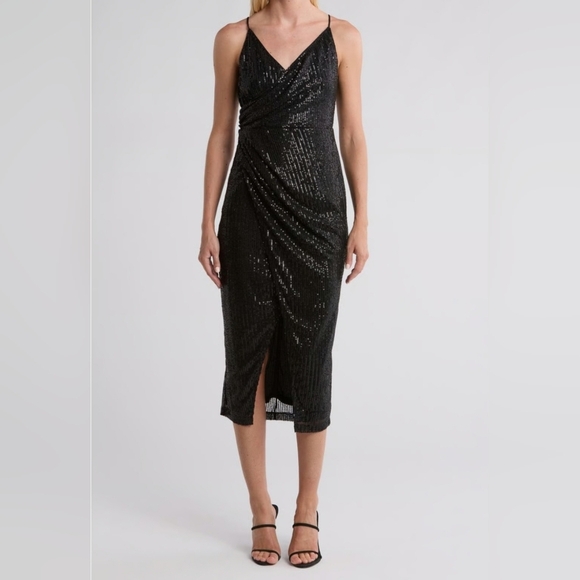 Area Stars Black Sequin Sleeveless Midi Dress, Women's Size Large