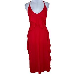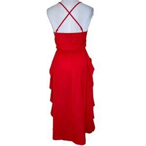 Area Stars Claire Dress XS Red Cascading Ruffle Midi Slip V-Neck Cocktail Party