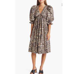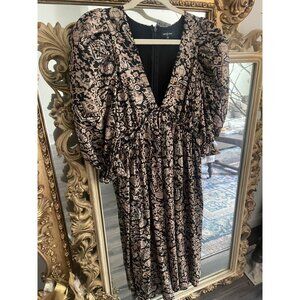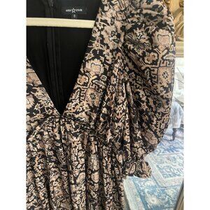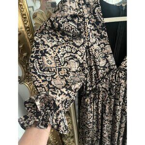 A poetically printed dress offers abundant sleeves and a deeply dipped neckline. This dress is so feminine & gorgeous on. Pics truly don’t do it justice.