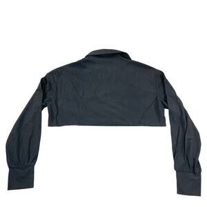 Area Stars Micro Waffle Cropped Top Black Long Sleeve V Neck Collar Size L NEW