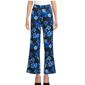Area Stars NWT Hannah Blue Flared Pants with Floral Pattern Wide Leg Size XL