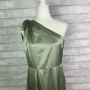 Area Stars One Shoulder Bow Tie Satin Maxi Dress