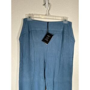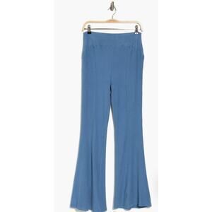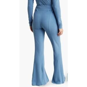 These ribbed flare lounge pants are perfect for a relaxed look. They come in a lovely light blue color. They feature a banded waist and are a pull on style. The cut is a flare style cut, and the ribbed material give it extra detail and style. New with tags.