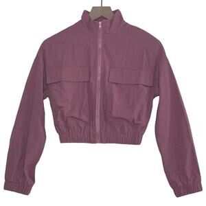 Area Stars Waffle Zip Bomber Jacket Cropped Utility Mauve Pockets Size XS NEW