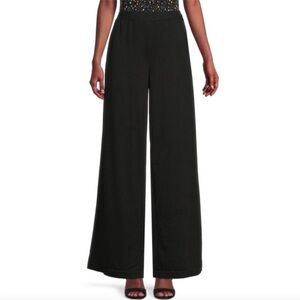 Area Stars Wide Leg Knit Pants Pull On High Rise Long Pant Black Hippie Flare