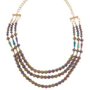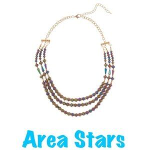Area Stars Womens Blue Purple Iridescent Beaded Multi Stranded 16" Necklace NWT ~ Last One