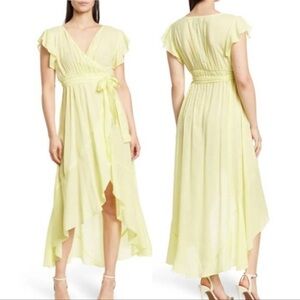 Faux wrap styling effortlessly fits this flowy maxi dress with a signature surplice neck and belted tie waist.