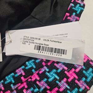Area Women's Cutout Crystal Buckle Houndstooth Hourglas Tweed Blazer Size:4 NWT
