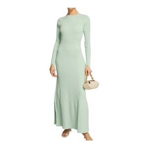 Lara open-back maxi dress from AERON featuring mint green, EcoVero™ viscose, ribbed knit, round neck, open back and long sleeves. Conscious: This item contains at least 50% low-impact materials, which are certified or widely recognised as having a lower environmental impact..