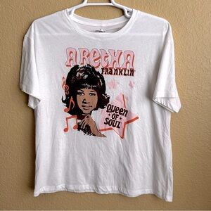 NWT. Celebrate the Queen of Soul with this stylish Aretha Franklin graphic crewneck t-shirt. Perfect for music fans, this white tee offers comfort and a classic look.
