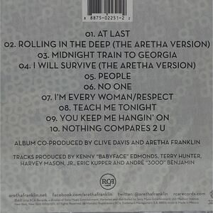 * The album, produced by Aretha Franklin and Clive Davis, was released by RCA in 2014. It features soulful R&B and soul music in English and is categorized under Music and CDs. The CD grading is Mint (M), and the catalog number is 88875-02251-2. The album is made in the United States.