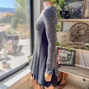 A’reve Anthologie Black & White Sweater Dress Layered Textured Knit Mesh, Medium