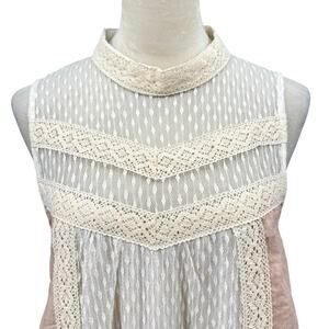 A’reve Anthropologie Cream Lace High Neck Sleeveless Peach A-line Mini Dress