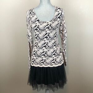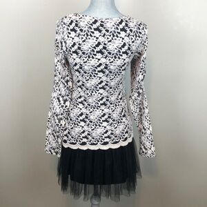 A'reve Black & Cream Floral Embroidered Whimsigoth Fairy Whimsy Dress Size Small