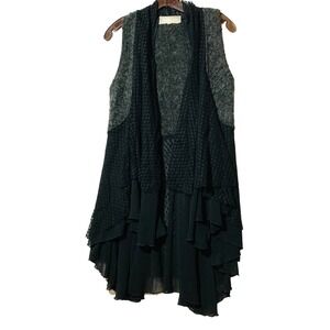 A'reve Black Gray Open Cardigan Jacket Top Layering Piece sz small