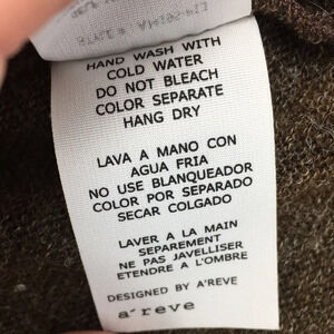 A'reve Brown Gray Striped Knit Cowl Neck Sweater Womens Medium Pullover Cardigan. Button closure. 100% Acrylic. Pre-owned Condition- no flaws, no rips, stains, or holes.