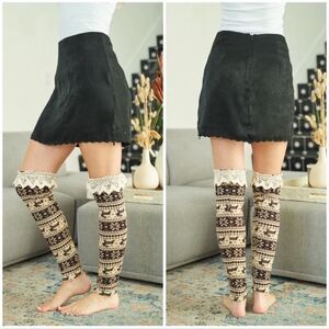 A’reve Brown White Lace Top Leg Warmers Sz M/L