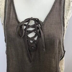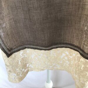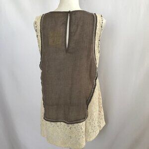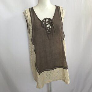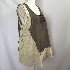 A'reve vintage style mocha and cream lace blouse top. It has crisscross tie in front and a key hole in back with a button for closure. NWT...size Large...see photos for details...071520