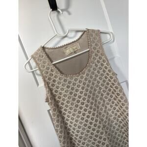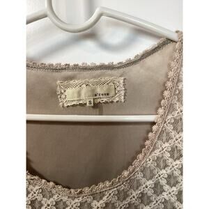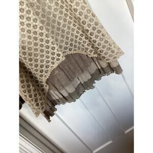 A'reve Women's Pleated tiered ruffle Lace Boho Mini Dress Taupe Beige Size Small