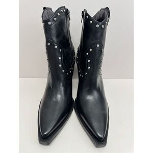 Arezzo Boots Size 9.5B Black Leather Block Heel Studded Booties Side Zip NEW