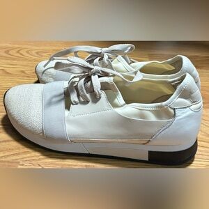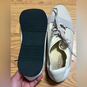 Stylish beige casual sneakers with lace-up design. Comfortable and versatile for everyday wear.