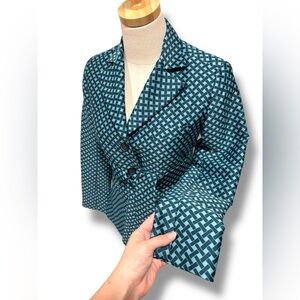 Argent Elegant Teal Lattice Patterned Women's Belted Blazer Jacket Size 2