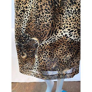 A great 80’s look skirt that has beautiful leopards worked into the fabric. It is a mid-calf length, and a size 10. Measurements are: Waist 30″ and waist to hem is 30″