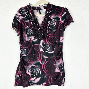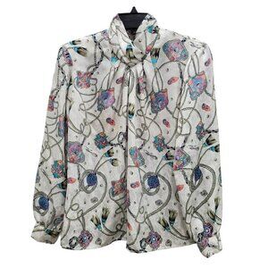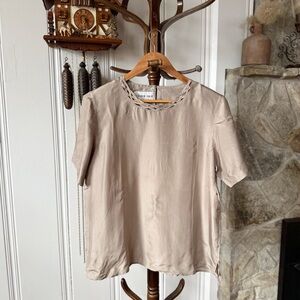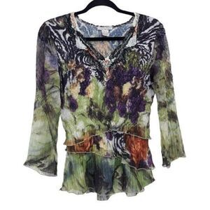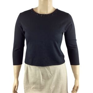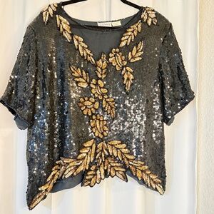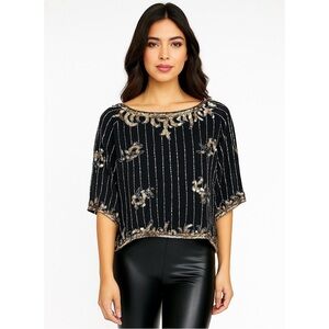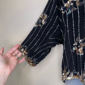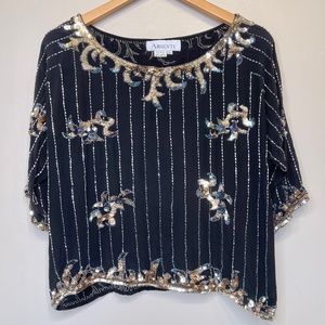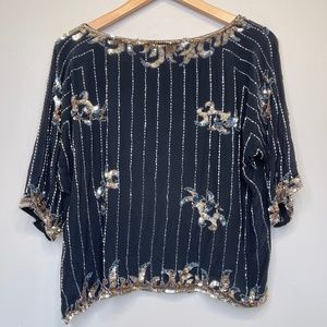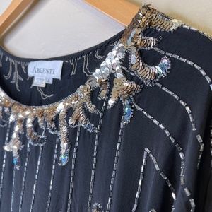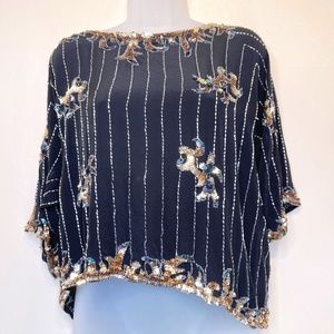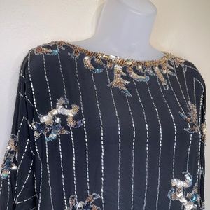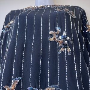 Argenti VTG Embellished Sequin Beaded Glam Dolman Sleeve Asymmetrical Hem Blouse