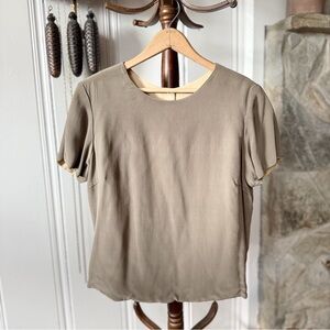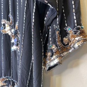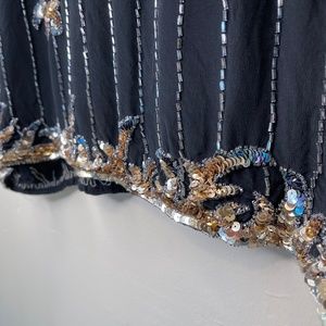 Argenti Vintage Embellished Sequin Beaded Glam Details Stunning Stripe Floral Design Short Dolman Sleeve Asymmetrical Hemline Boat Neckline Silky Beautiful Oversized Sheer Layering Boxy Retro Disco Studio 54 Antique Flapper Vibes Popover High Low Blouse