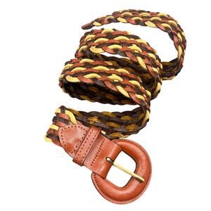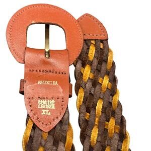 Argentina Leather Belt XL Multicolor Brown Yellow Braided Woven Round Buckle