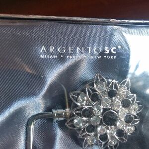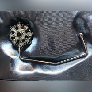 Gorgeous black clear crystals on a silver hanger. New in opened package for pics. Perfect holiday gift for anyone who hates setting their handbag on the floor.