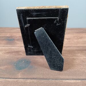 Charming accent piece for your home decor, a picture frame crafted from woven rattan. This frame is designed to hold a 4x6 inch photograph, making it ideal for displaying cherished memories. The frame features a unique woven pattern that adds texture and visual appeal, while the backing is finished in a complementary black velvet. A small easel is attached to the back which allows for easy display on any tabletop surface.