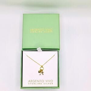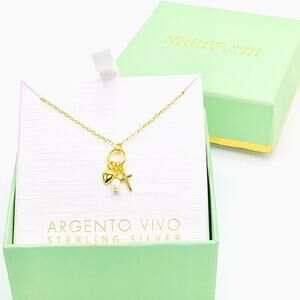 Chic Argento Vivo necklace with gold charms and a pearl accent.