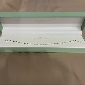 Argento Vivo Sterling Silver Disc Line Bracelet 7” NWB Dainty & Lightweight