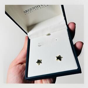 Argento Vivo Sterling Silver Gold Tone Star Stud Earrings NEW
