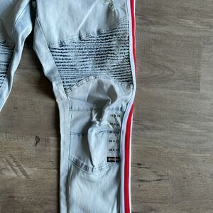 Argonaut Nation Jeans 36x32 Distressed Moto Biker Denim Red White Stripe Men’s