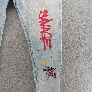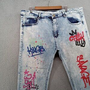 Argonaut Nation Jeans Mens 42x32 Blue Light Wash Painted Graffiti Baggy Y2K